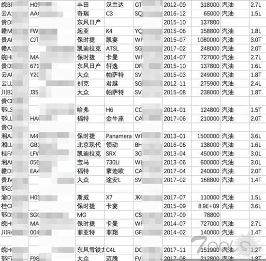 令人震惊的是,车贷用户的车辆信息,包括车型、车牌号、颜色、排量等信息,甚至两位贷款担保人的姓名、手机号,也被收录在了这份电子表格内。这些数据,多达65个维度。