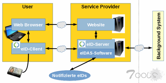 - 网站看到用户启动eID卡身份验证过程并请求用户的特殊响应。