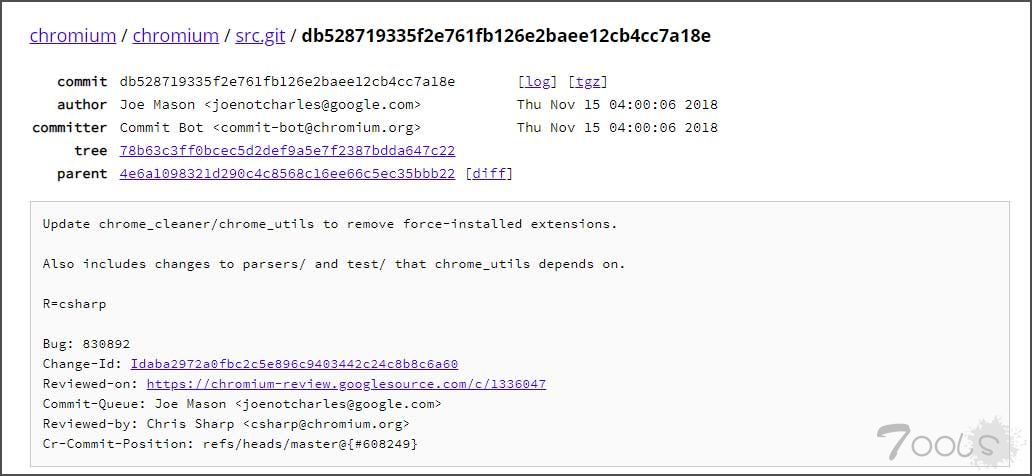 这将根据Chrome源代码提交进行更改,其中包含“Update chrome_cleaner/chrome_utils to remove force-installed extensions”的说明。根据此更新,Chrome清理工具现在可以检测并删除强制安装的扩展程序。而且它会继续采用自动安装的Google扩展程序白名单。