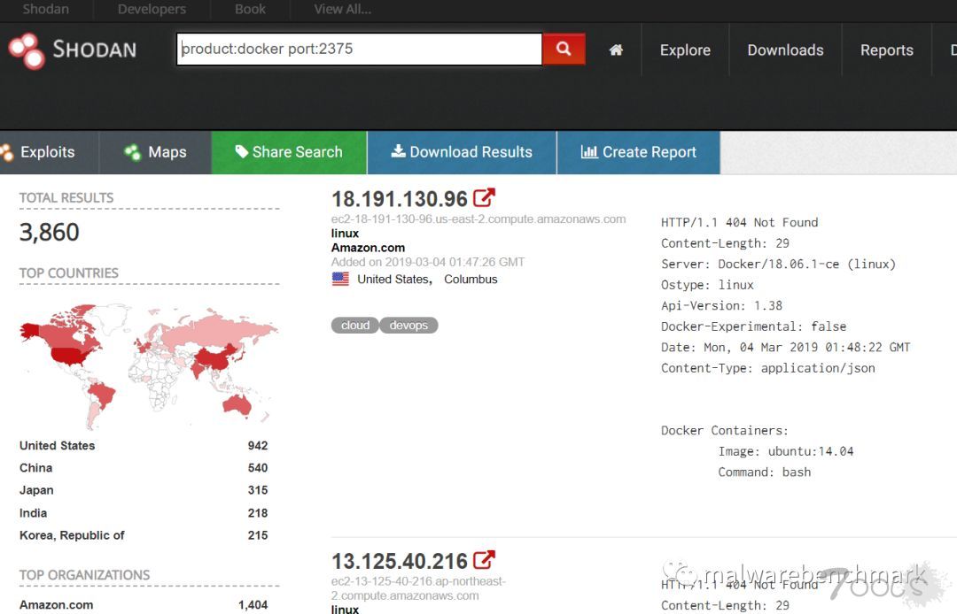 目前仍发现有3,860个实例2375端口开放,74个实例的端口2376可访问。专家指出,只有100个dock守护进程已经更新到修补后的18.09.2或更新版本,剩下的仍然容易受到攻击。