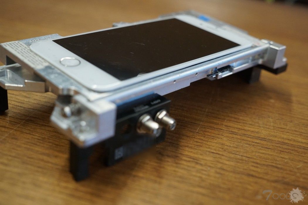 一台安装在支架上的“dev-fused”版iPhone Image: Motherboard