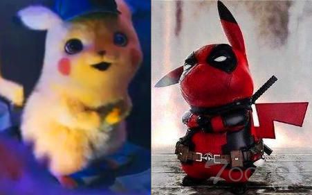 没错,各取一半,又是一毛一样。而这个死侍皮卡丘的形象,则是来自于即将在5月10日上映的3DS游戏改编真人电影《大侦探皮卡丘》中的角色。