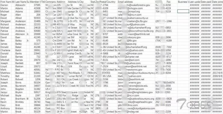 而在被泄露的CSV文件中,包含了几乎上述人员的全部详细信息。这些信息全部来自于被扒窃数据的三家网站,其中包含了这些FBI成员的真实姓名、家庭住址、电子邮件、联系电话等详细信息,不得不说一旦这些信息落入到不法分子手中,就像是拿到了定向攻击的钥匙。