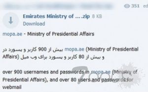 根据Chronicle报道,Dookhtegan总共泄露了66名受害者的数据,这些受害者主要来自中东国家,还有非洲,东亚和欧洲。数据来自两个政府机构,也来自私营公司。 Telegram频道上指定的两家最大公司是阿提哈德航空公司和阿联酋国家石油公司。