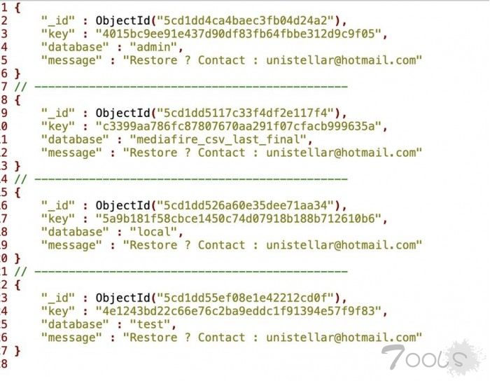 在这个曝光的数据库中并没有泄露源或者从属关系的标签。这个MongoDB数据库本身是托管在亚马逊AWS基础架构上的,反向DNS也没有显示任何结果。数据库中的结构和名称暗示这个曝光的数据库仅仅只是黑客大规模手机数据中的一部分。根据Shodan的历史数据,MongoDB于2019年4月23日首次被索引。