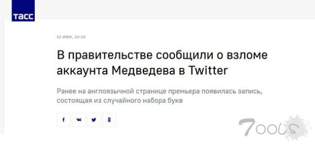 俄塔社题为“政府证实梅德韦杰夫推特账号遭黑客入侵”报道截图