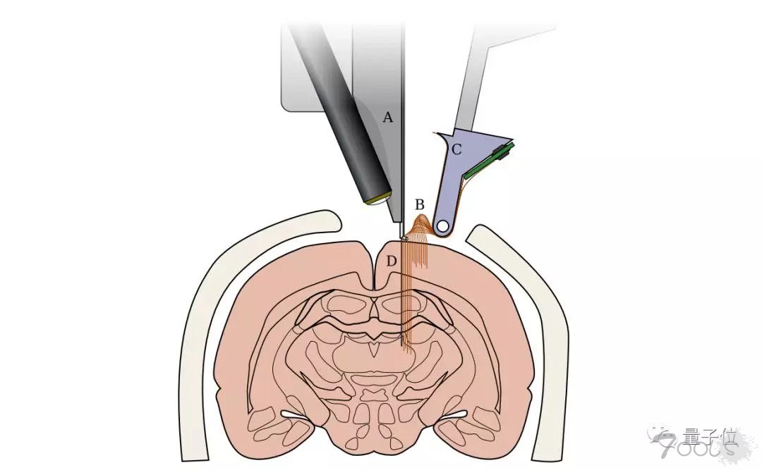 这个系统可以快速且精确地植入探针,每个都是独立瞄准靶点,避开可见的脉管系统,找到各自的目标。这样,可以有效避免大脑出现炎症和损伤。