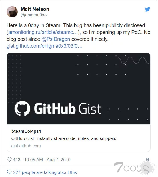 Steam客户端被曝存在0Day漏洞,超1亿用户受影响