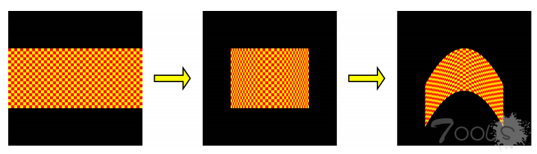 将平面贴纸进行转换以凸显三维信息,转换结果模拟矩形图像放在帽子上后的形状。