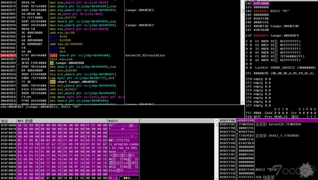 Sality使用外壳程序保护,执行后首先解密出核心代码,然后跳转到入口执行。