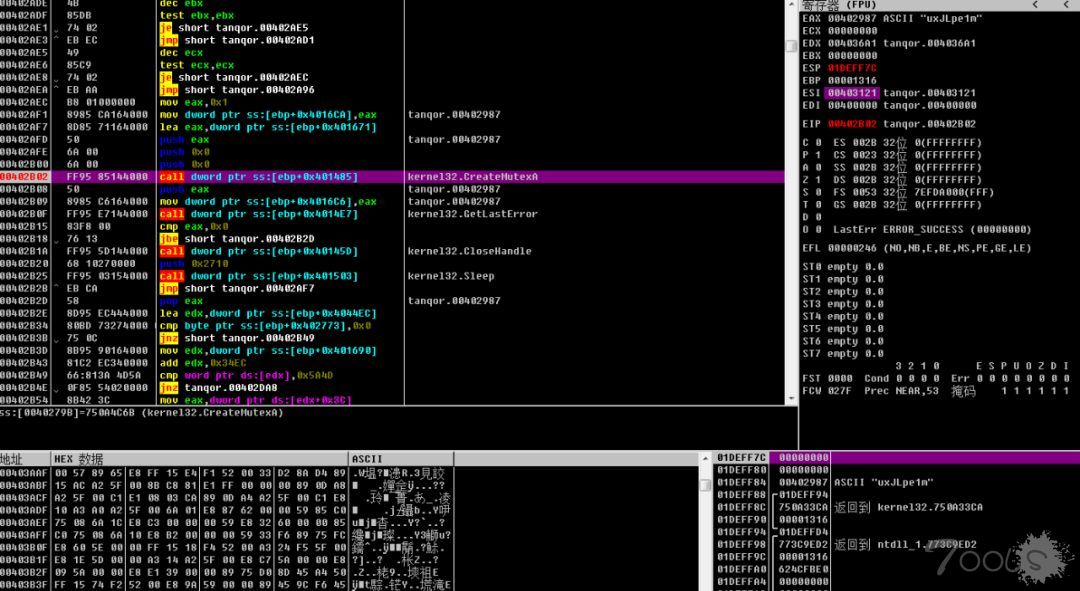 创建互斥体”uxJLpe1m”以保证木马进程具有唯一实例。