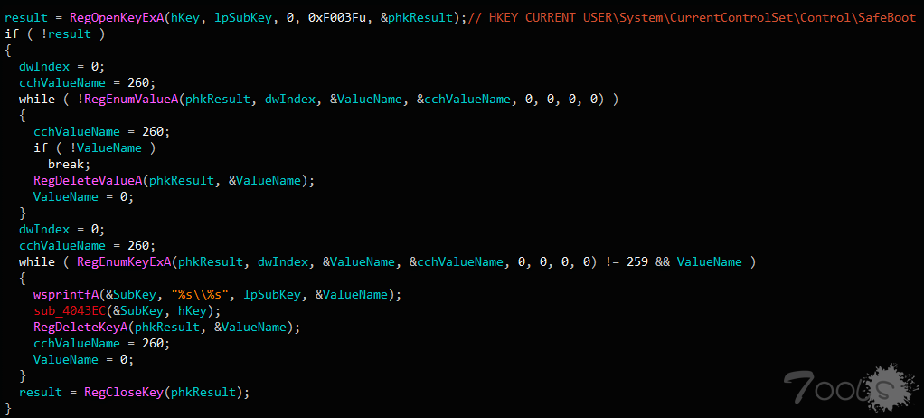 枚举和删除位于以下注册表子项中的所有条目来阻止受感染的计算机进入安全模式。