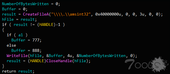 创建驱动程序,文件路径C:\WINDOWS\system32\drivers\<random>.sys,符号链接为“\DosDevices\amsint32”,该驱动程序用来阻止对各类安全软件供应商网站的访问。