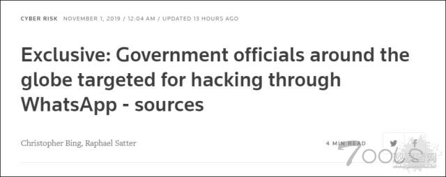脸书产品新漏洞,至少20国官员手机被黑客控制