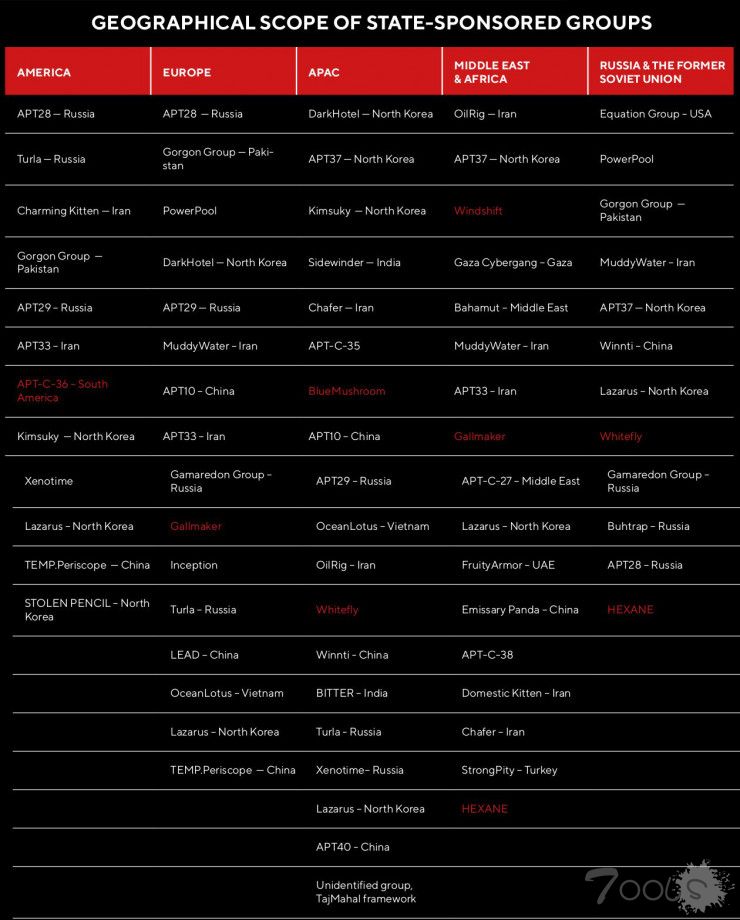 除了以上这些网络毒瘤,有政府在背后撑腰的黑客们(也被称为 APT 组织)最近几年也很忙。Group-IB 在报告中就列出了 38 个活跃的组织,其中有 7 个是今年新冒出来的网络间谍组织。