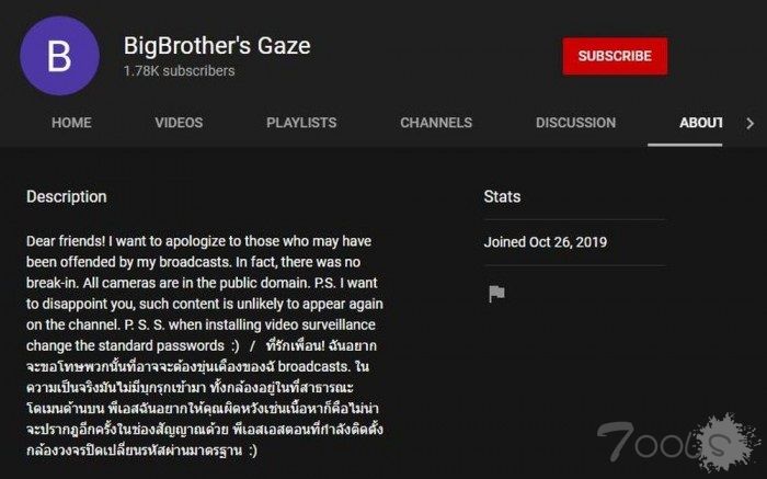 不过有网友提前截获油管频道的简介截图,上面出现了疑似频道创建者的道歉:“我向那些因我的直播而被冒犯的人致歉,虽然所有的摄像头都位于公共领域,同时该频道再也不会出现类似的视频内容”。最后疑似入侵者还提醒泰国监狱部门“更改标准密码。”