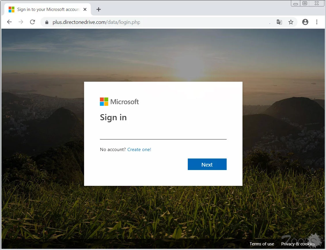 伪造的Microsoft登录页面