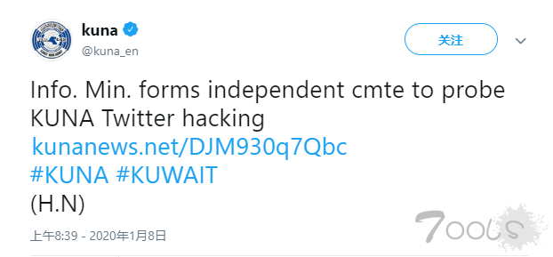 科威特国家新闻社Twitter账号遭黑客攻击。