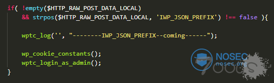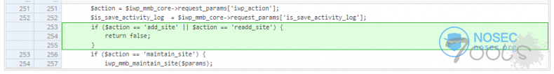 在这个漏洞中,前置条件是payload的iwp_action参数必须等于readd_site或add_site,因为它们是少数无需授权验证的操作,这也是漏洞的根本原因所在。