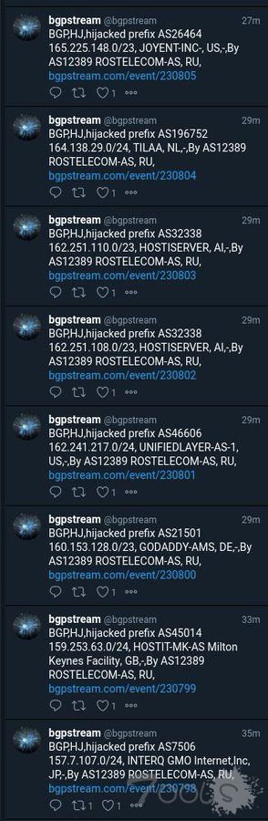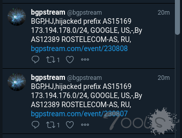 俄罗斯 Rostelecom 被发现劫持 Google/AWS/Cloudflare 等公司的互联网流量