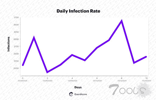 值得注意的是,61% 的计算机仅感染了 2 天或更短的时间,21% 的计算机感染了 7-14 天以上,其中 17.1% 的计算机受到了重复感染。后一种情况可能是由于缺乏适当的安全措施而导致在首次感染服务器时无法彻底消除该恶意软件。