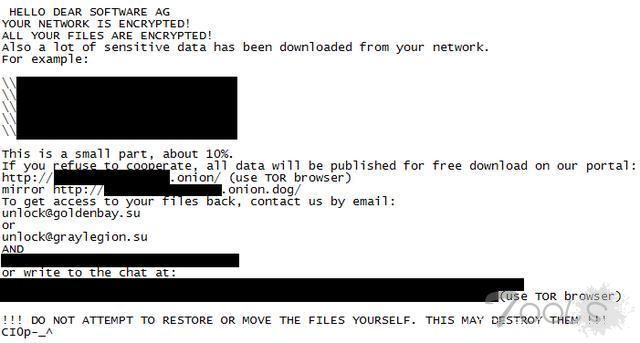 安全研究员MalwareHunterTeam在本周早些时候发现了针对Software AG的勒索软件二进制文件的副本 。$ 20 +百万的赎金需求是有史以来勒索软件攻击中要求的最大赎金之一。