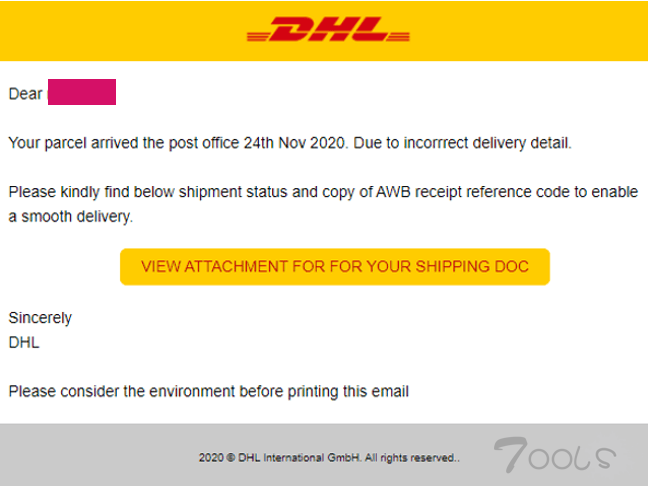 DHL是全球被模仿最多的品牌,占到与运输相关的钓鱼邮件总量的56%,其次是亚马逊的37%和联邦快递的7%。