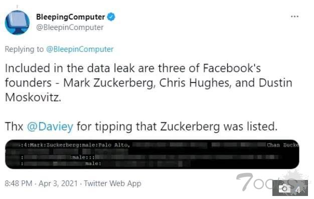据报道,超过5.33亿脸书用户的详细信息和电话号码被黑客泄露,这其中还包括了扎克伯格。扎克伯格的个人信息——包括他的姓名、家庭住址、婚姻状态、出生日期、联系电话等都被黑客窃取,并发布在一个黑客论坛网站上。