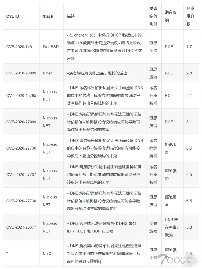 这些漏洞影响的TCP/IP堆栈包括但不限于:
