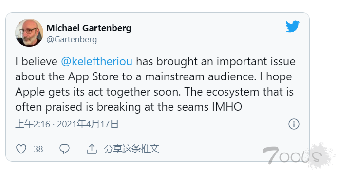 Eleftheriou说:“关注安全而不是收入的替代应用商店会比苹果做得更好。”“iPhone已经有了足够的系统级保护来实现这一点,苹果需要停止每天都在伤害消费者的安全剧场。”