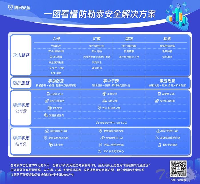 其次,公有云系统有专业安全团队7*24小时监控云上攻击活动,往往可以在攻击的初始阶段及时处置,从而大幅减少了发生系统瘫痪等灾难性事件的概率。李铁军表示:“在公有云环境下,通过漏洞扫描、主机安全等产品,帮助用户及时发现系统存在的漏洞,并进行修复,是防范勒索病毒的最核心工作;而当主机被入侵之后,病毒会主动向外扩散,这个阶段需要防火墙等产品进行检测、识别攻击,阻断横向传播,将损失控制在极小的范围内。“