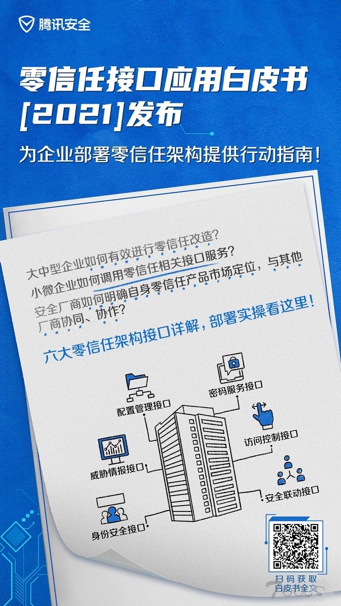 在由产业互联网发展联盟指导,零信任产业标准工作组、腾讯安全、腾讯标准、腾讯企业IT联合主办的零信任协同发展研讨会暨接口白皮书发布&标准宣贯会上,零信任产业标准工作组发布《零信任接口应用白皮书(2021)》。