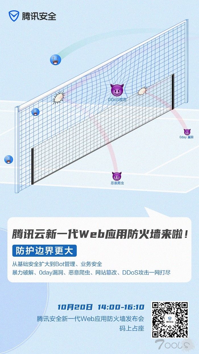 10月20日14:00,腾讯安全将发布“新一代WAF产品”,以更宽广的防护边界、更多样的接入形态,实现基础安全、Bot管理和业务安全能力的全面提升,帮助腾讯云内外用户轻松应对各类Web攻击入侵及挑战威胁!