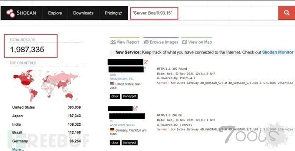 Shodan 搜索在 Boa 上返回了 200 万条结果