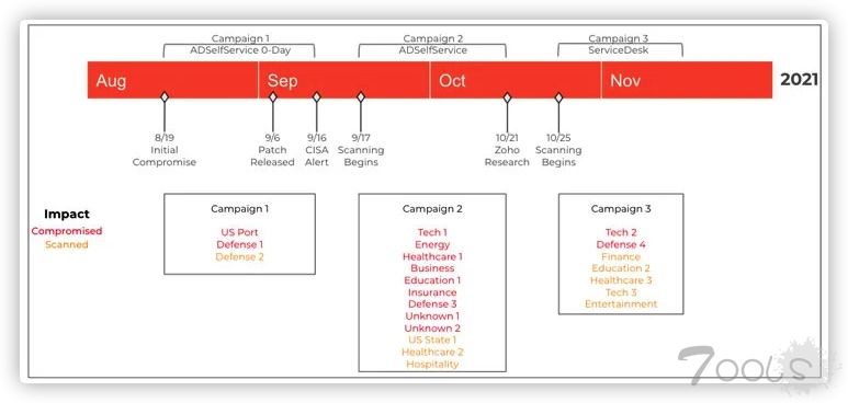在过去的三个月中,至少有两个组织因ManageEngine ServiceDesk Plus漏洞而受到损害,随着APT集团加大对技术,能源,运输,医疗保健,教育,金融和国防行业的侦察活动,这一数字预计将进一步攀升。