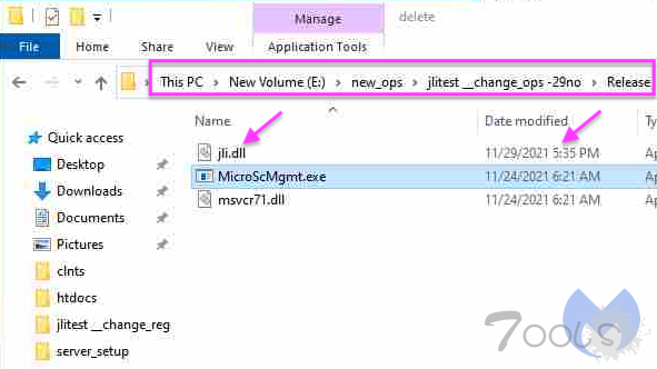 测试的木马(jli.dll) 也在 11 月下旬进行了测试,然后于 2021 年 12 月 9 日进行了最终编译,以及用于加载它的 MicroScMgmt.exe。