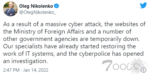 攻击者删除了多个网站的内容,包括乌克兰外交部、教育和科学部、国防部、国家紧急事务局和内阁。