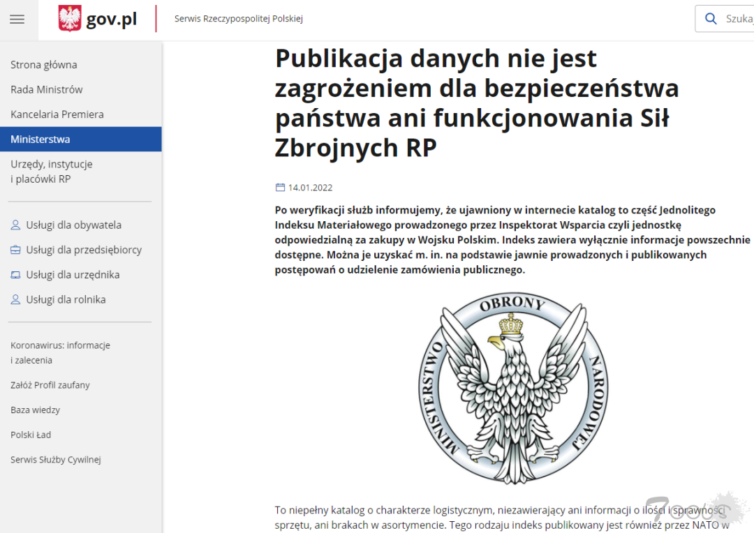 官员们表示,该数据也被称为 System Informatyczny Jednolitego Indeksu Materiałowego(统一材料索引的 IT 系统),该数据不仅是公开的,而且还由北约作为物流参考总目录 (NMCRL) 数据库的一部分发布。