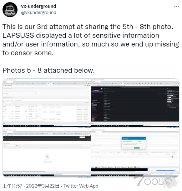两个月后,一名 Lapsus$ 成员在电报群里分享了 Okta 内部系统的屏幕截图,让该公司内部安全团队的颜面尽失。