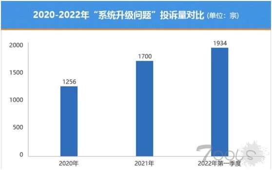 其次,汽车OTA的升级有可能产生新的安全风险。OTA升级后,原本投放到市场时安全的汽车很可能因为软件升级对参数、代码调整从而产生新的漏洞,带来新的安全问题。据车质网数据显示,近三年来“系统升级问题”投诉量均超过千宗,其中2022年仅一季度的相关问题投诉量便达到1934宗,甚至超过了2021年全年的投诉总量。