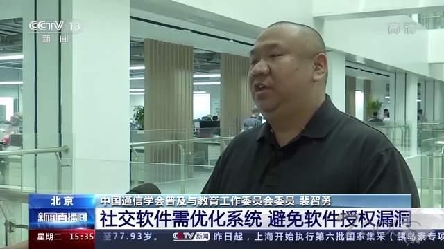 中国通信学会普及与教育工作委员会委员 裴智勇:这次事件的发生,应该说可能不仅仅是一个社交软件的问题,可能很多社交软件当中都有类似的问题。我相信这次事件的发生,很多即时通信和社交软件都会及时跟进,把安全的问题弥补。