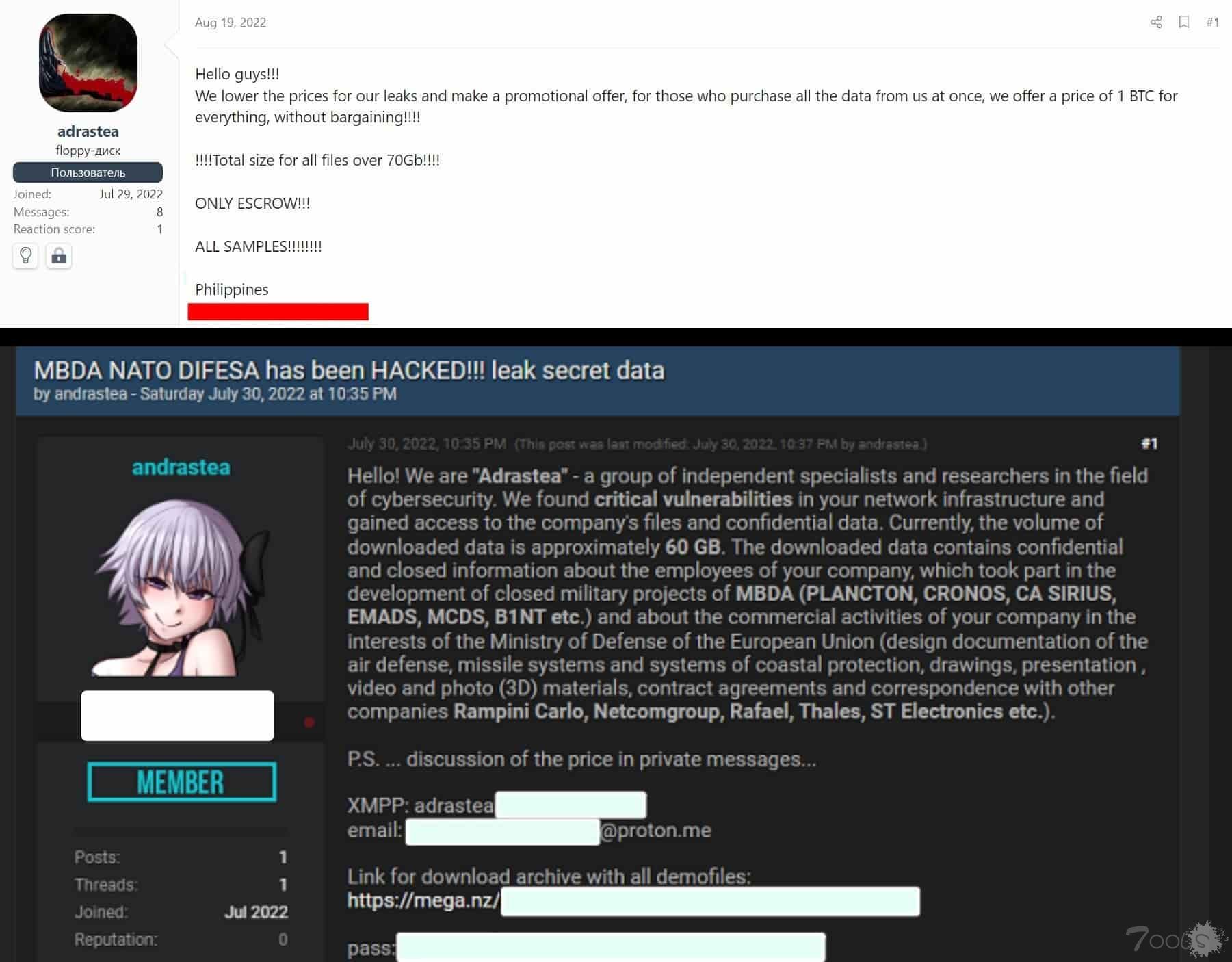 MBDA 是世界第二大导弹制造商,目前,黑客正在俄罗斯论坛上以 1 BTC 的价格出售价值 70 GB 的所谓数据。