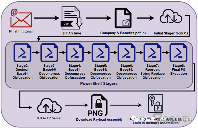 Securonix 威胁研究团队的一位发言人表示,恶意软件的反分析和反监控检查的数量和种类都不寻常。 同样,大量的混淆层有效负载和恶意软件试图替换或生成新的自定义命令和控制 (C2) 阶段有效负载以响应分析尝试:“一些混淆技术,如使用 PowerShell get-alias 执行 [invoke-expression cmdlet] 是非常罕见的。 ”