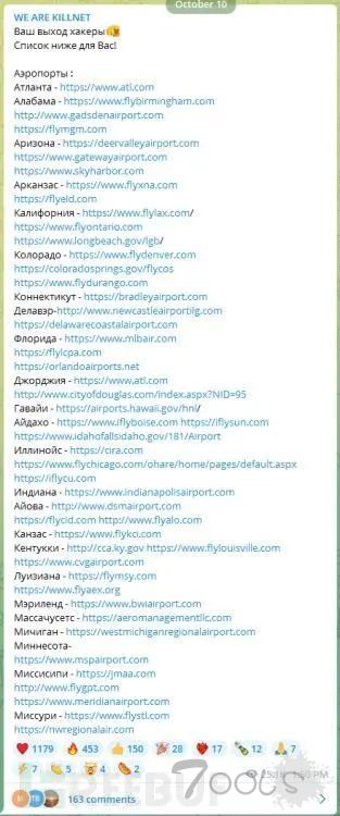 除了上述攻击目标外,KillNet 黑客组织还在其 Telegram 频道上列出了一些域名,以便组织成员和其他黑客可以获取新的攻击目标。