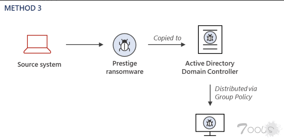 MSTIC 研究人员观察到威胁参与者使用三种方法部署 Prestige 勒索软件: