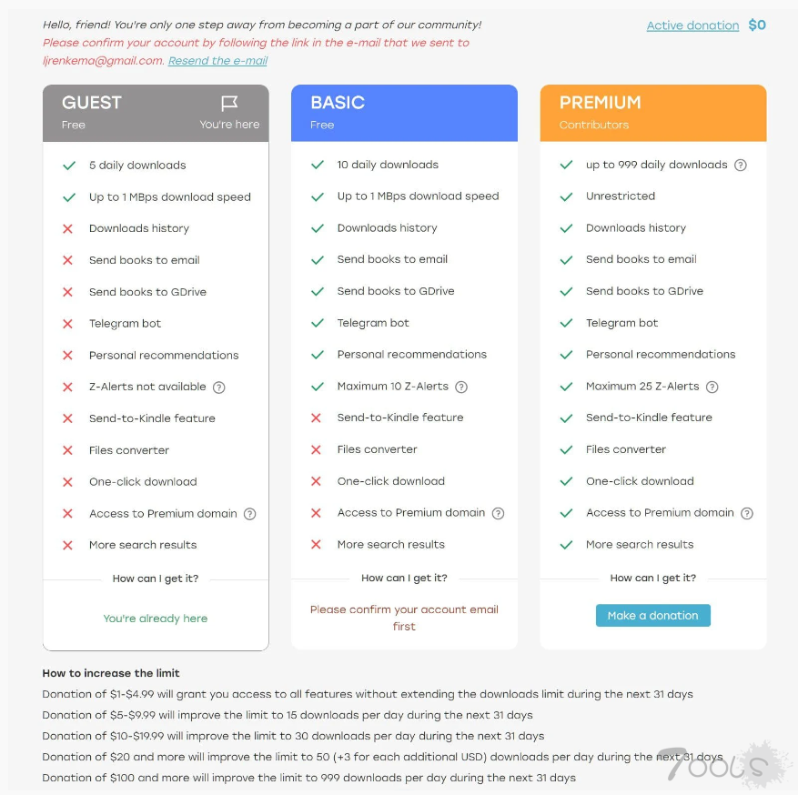 Z-Library基于捐赠的订阅系统