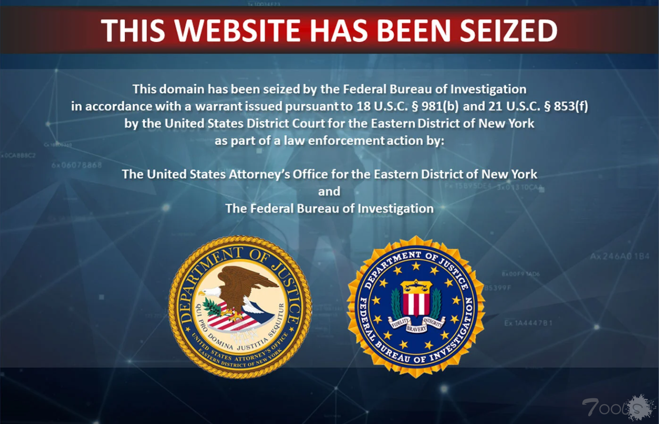 “作为执法行动的一部分,美国东区地方法院根据18 U.S.C. § 981(b)和21 U.S.C. § 853(f)签发的搜查令,联邦调查局已扣押了该域名,”扣押通知中写道。