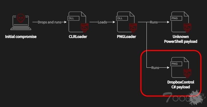由CLRLoad(或另一个称为PowHeartBeat的第一阶段)启动的PNGLoad据说有两种变体,每种变体负责解码图像中的恶意代码以启动PowerShell脚本或基于.NET C#的有效负载。